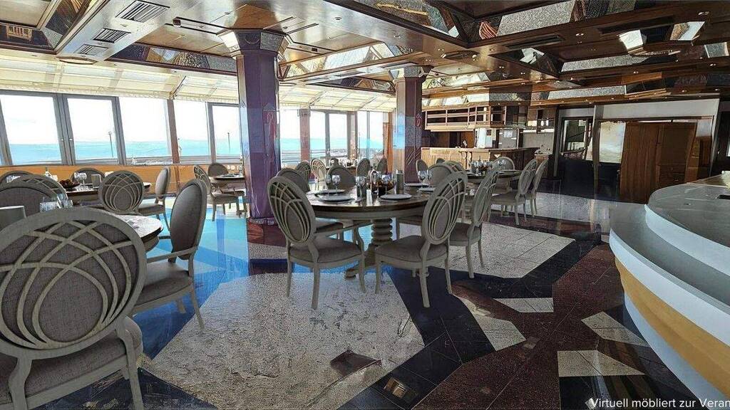 * Großer Gästebereich: Platz für bis zu 118 Gäste * Mehrzweckraum/Veranstaltungsraum: Platz für bis zu 56 Gäste * Terrasse: ca. 200 m² mit unvergleichlichem Panorama * Voll ausgestattete Küche * Bar-/Schankbereich * 6 Kühlräume * Getrennte Toiletten