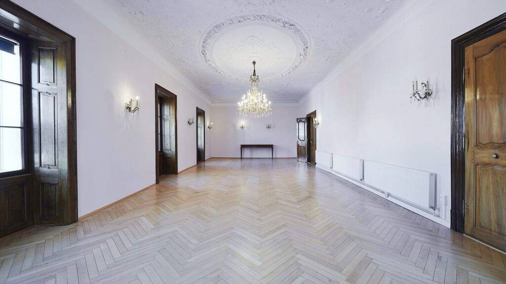 Im 1. und 2. Obergeschoß sind die alten und teilweise noch historisch erhaltenen Räume - mit Stuckdecken und Türen mit kunstvoll verzierten Beschlägen - über breite Gänge sowie auch Laubengänge zu erreichen.
