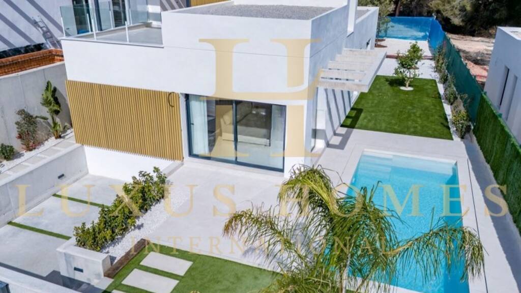 Fantastische Neubauvilla mit großem Garten, Pool, Meerblick und Garage in einer Premium-Gegend in der Nähe von Benidorm