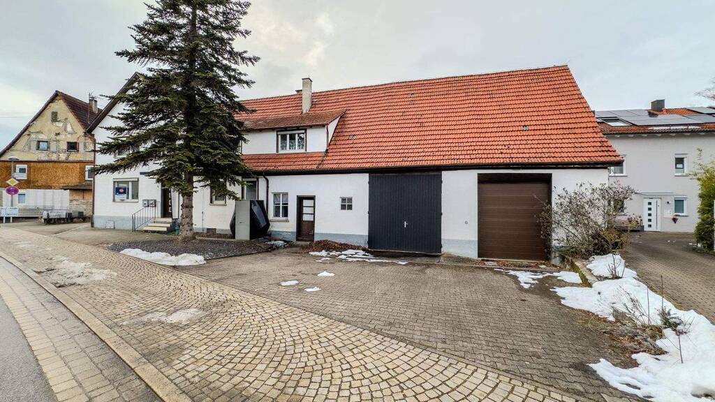 Bei der angebotenen Immobilie handelt es sich um ein ehemaliges Bauernhaus mit angeschlossener Scheune in traditioneller Fachwerkbauweise, welches auf einem 559m² großen Grundstück errichtet wurde. Das genaue Baujahr ist nicht bekannt - die ältesten vorliegenden Bauunterlagen stammen aus dem Jahre 1948 und zeugen von einer langen Historie des Gebäudes. Das Objekt befindet sich in ruhiger Ortsrandlage von Kirchheim-Jesingen und überzeugt durch ein großzügiges Flächenangebot sowie vielseitige Nutzungsmöglichkeiten.