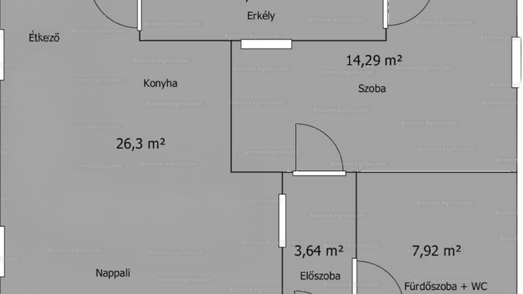 Wohnfläche: 46 m² (Eingangshalle, Wohnzimmer-Küche-Esszimmer, Schlafzimmer, Bad mit WC, Balkon)
