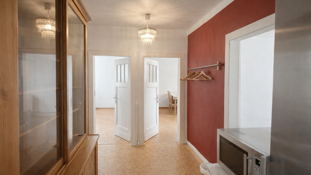 Ihr neues Zuhause befindet sich in der dritten Etage in einem alt ehrwürdigen Mehrfamilienhaus in der City. Sie werden von einem geräumigen Flur mit Garderobenbereich empfangen. Das helle Badezimmer ist mit einer Badewanne ausgestattet. Hier findet auch die Waschmaschine Ihren Platz. Aus dem Flur erreichen Sie weiterhin die Küche und drei weitere Zimmer. Ein weiteres Zimmer ist durch das andere zu begehen, hat aber keinen direkten Flurzugang. Das vierte Durchgangszimmer ist durch das Badezimmer zu erreichen, ideal als Elternschlafzimmer. Alle Zimmer sind lichtdurchflutet und hell. Im Keller steht Ihnen ein Kellerraum zur Verfügung. Das Fahrrad findet auf einem Außen Stellplatz im Innenhof seinen Platz. Einen PKW Stellplatz gibt es nicht. Sie können aber im gegenüberliegenden Parkhaus einen Dauerstellplatz buchen.