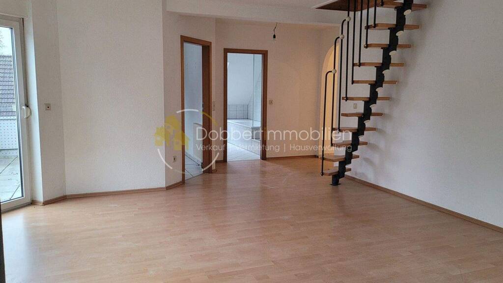 Die gesamte Wohnung ist hell und bietet viel Platz um sich richtig wohl zu fühlen; Wohn/ Essbereich mit Zugang zum Balkon; ältere Einbauküche; Tageslichtbad mit Wanne, Dusche, WC und Waschmaschinenanschluss; Schlaf und Kinderzimmer; Laminatböden in allen Zimmern; eine Raumspartreppe führt vom Wohnbereich in den oberen Teil der Wohnung , dieser Raum ist ideal als Büro nutzbar; zur Wohnung gehört ein Kellerraum . 1 Garagenstellplatz ist im Kaufpreis enthalten.
