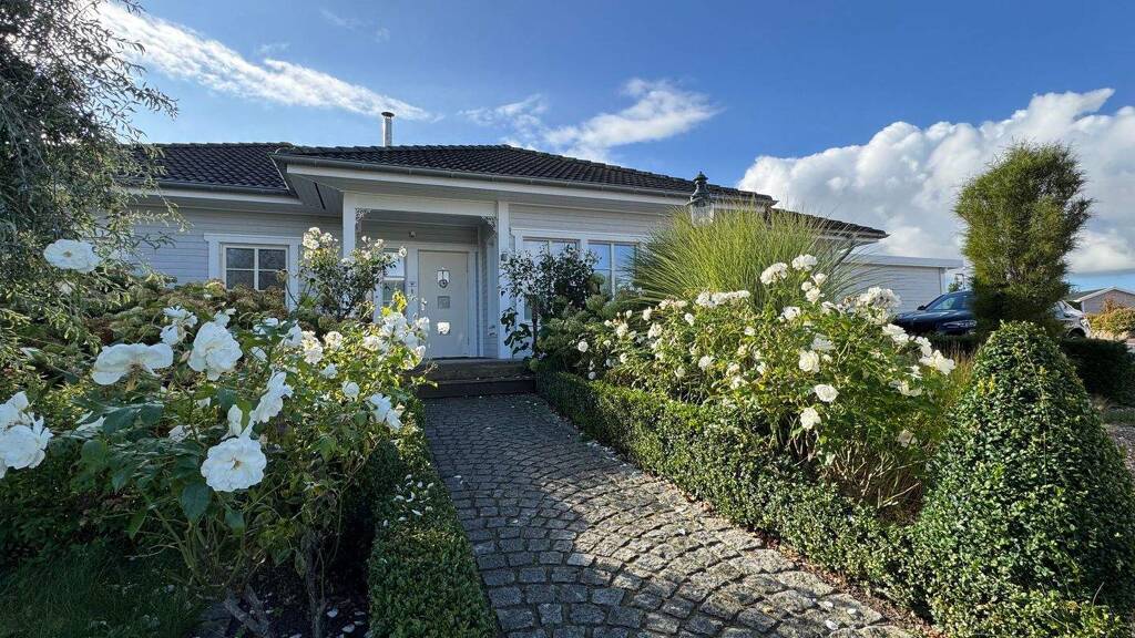 Durchdacht angelegte Beete, gepflegte Rasenflächen und abwechslungsreiche Bepflanzungen verleihen dem Garten zu jeder Jahreszeit eine besondere Atmosphäre. Ob als Ort für entspannte Stunden, zum Spielen für Kinder oder als Kulisse für Gäste - dieser Garten erfüllt verschiedenste Bedürfnisse und ergänzt das Wohnhaus perfekt.