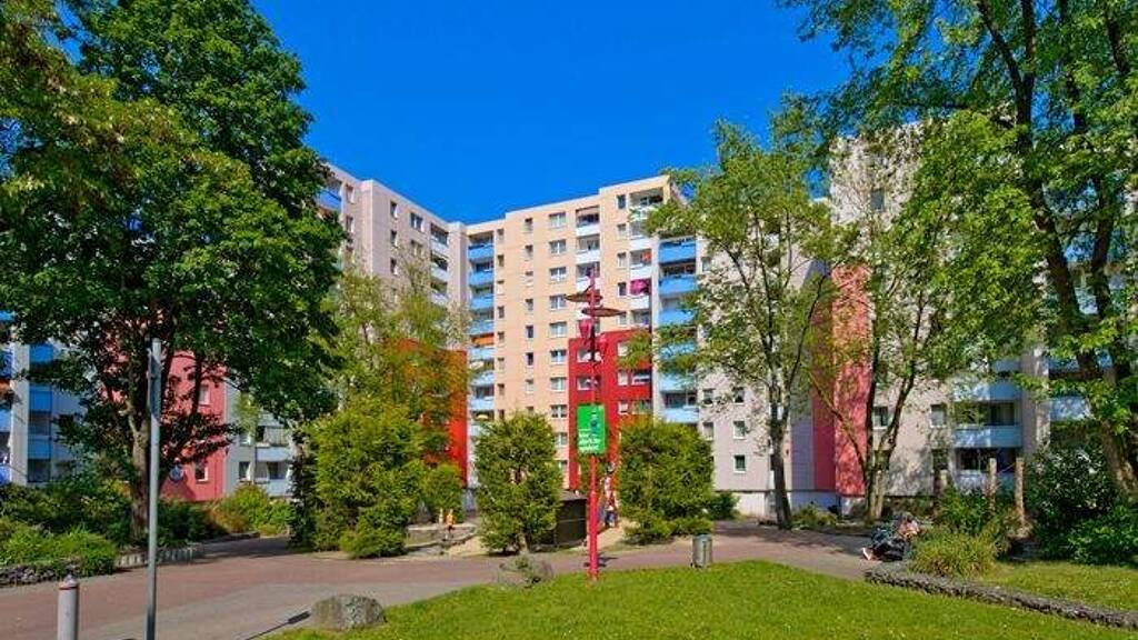 Unser grundlegend modernisiertes Wohnquartier umfasst vor Ort rund 934 Wohnungen mit 1 bis 4 Zimmern auf einer Wohnfläche von 46 bis 87 m². Die Fassaden strahlen in frischen Farben, die neuen isolierverglasten Fenster und Verblendungen helfen Ihnen, den Energieverbrauch zu senken. Im grünen Wohnumfeld befinden sich mehrere, zum Teil neugestaltete Kinderspielplätze und Freiflächen. Ebenso sind zahlreiche offenen Stellplätze vorhanden, und es können Stellplätze in unseren Tiefgaragen angemietet werden.