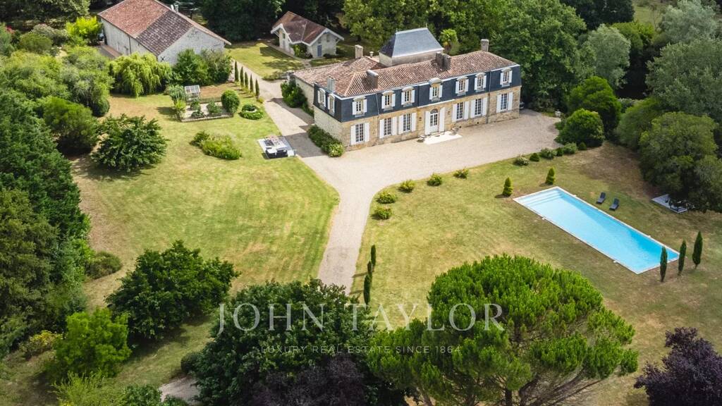 Inmitten eines großen Waldgebietes, das sich über etwa 11 Hektar erstreckt, bietet Ihnen John Taylor ein außergewöhnliches Chalet aus dem 18. Jahrhundert, das mit einer bemerkenswerten Architektur renoviert wurde. Es bietet einen Panoramablick und einen beheizten Pool, der sich über eine hügelige Landschaft und weite Weinberge erstreckt.