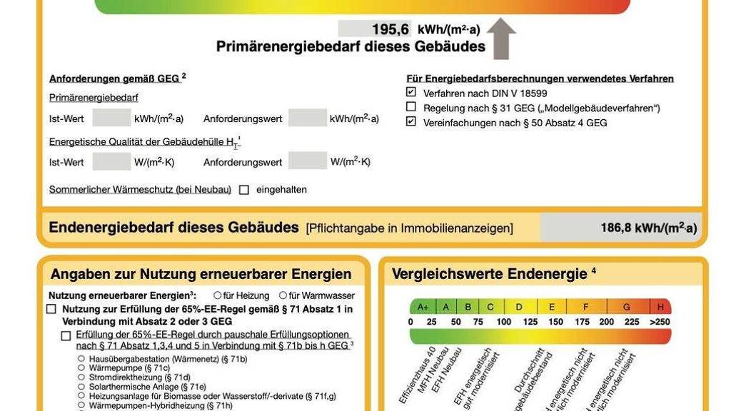- Endenergiebedarf dieses Gebäudes186,8 kWh/(m²·a) | F