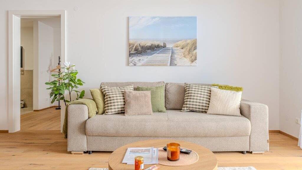 Sie betreten die Wohnung und werden sofort von dem hochwertigen Fertigparkett begrüßt, das sich durch die gesamte Wohnung zieht und für ein luxuriöses Wohngefühl sorgt. Die Wohnung ist neu und erstrahlt in besonderem Glanz, sodass Sie sich hier nur noch einrichten und wohlfühlen müssen.