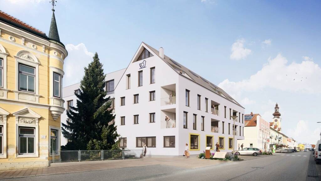 Denn auf dem Areal entstehen nicht nur 23 moderne Wohnungen, sondern auch ein Grünbereich samt Kinderspielplatz. 40 Stellplätze und Kellerabteile für alle Wohnungen runden das Wohnangebot ab. Im Erdgeschoss entsteht gleichzeitig das Raiffeisen Kompetenzcenter Neumarkt.