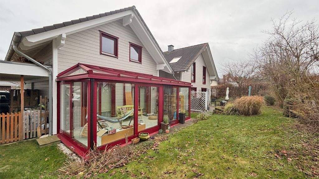 Das freistehende, massiv erbaute Holz-Doppelhaus des Herstellers Stommel aus dem Jahr 2006 verfügt auf einer Grundstücksfläche von ca. 683 m² über ein Haupthaus mit ca. 158 m² Wohnfläche verteilt auf vier Zimmer sowie ein Einliegerhaus mit einer Wohnfläche von ca. 110 m² verteilt auf drei Zimmer.