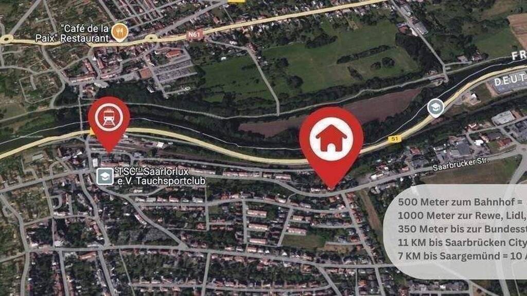 Kleinblittersdorf ist eine attraktive Gemeinde im Regionalverband Saarbrücken, direkt an der deutsch-französischen Grenze gelegen. Die charmante Lage an der Saar sowie die unmittelbare Nähe zur Landeshauptstadt Saarbrücken machen den Ort besonders beliebt bei Berufspendlern, Familien und Investoren.