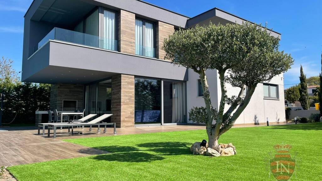 Beeindruckende Villa zum Verkauf, mit offenem Meerblick, Garten und Swimmingpool! Die Villa wurde 2018 erbaut, besteht aus Erdgeschoss und erstem Stock mit einer Gesamtfläche von 178,79 m2. Im Obergeschoss befinden sich ein Flur, ein Badezimmer, drei Schlafzimmer, von denen das Hauptschlafzimmer über ein Badezimmer verfügt, und alle Schlafzimmer haben Zugang zu einer überdachten Terrasse, die einen schönen, offenen Blick auf das Meer bietet. Eine Innentreppe führt in das Erdgeschoss des Hauses, das aus einer Eingangshalle, einem Schlafzimmer mit Bad, einer Gästetoilette, einem Abstellraum, einem offenen Wohnzimmer mit Küche und Essbereich besteht, mit Zugang zu einer überdachten Terrasse mit Grill. Der Garten ist schön dekoriert, ordentlich gepflegt und es gibt einen Swimmingpool mit Liegewiese und vier Parkplätze. Die Villa zeichnet sich durch eine hervorragende Raumaufteilung, modernes Design, hochwertige Materialien, Klimaanlage aller Räume, Fußbodenheizung, Videoüberwachung, Alarmanlage, intelligentes Systemmanagement, ALU-Tischlerei und hochwertige Möbel aus. Grundriss des Erdgeschosses: Abstellraum: 4,50 m2 Flur: 7,10 m2 Küche und Esszimmer: 21,93 m2 Wohnzimmer: 23,20 m2 Schlafzimmer 1: 7,83 m2 Badezimmer: 3,24 m2 Toilette: 1,98 m2 Terrasse: 18,30 m2 Grundriss der 1. Etage: Treppe: 8,13 m2 Flur: 8,38 m2 Raum 2: 12,92 m2 Schlafzimmer 3: 11,96 m2 Raum 4: 23,15 m2 Badezimmer: 6,40 m2 Terrasse: 11,52 m2 Loggia: 8,25 m2 GESAMT: 178,79 m2 Die Villa befindet sich in Lindarici. Der Ort befindet sich im westlichen Teil der Insel Krk, 2 km vom Meer und 10 km von der Stadt Krk entfernt. Lindaric geht auf das 15. Jahrhundert zurück. Etwa 100 Menschen leben hier das ganze Jahr über. Nicht weit von Lindaric entfernt befindet sich das Dorf Glavotok, in dem sich ein Franziskanerkloster aus dem 16. Jahrhundert befindet. Direkt am Ufer des Meeres. Der Ort strahlt Ruhe und besondere Schönheit aus. Saubere und einsame Strände in Richtung Küste überwiegen. Das Klima ist wahrhaft mediterran, so dass es möglich ist, es das ganze Jahr über zu genießen. Für alle Fragen kontaktieren Sie bitte die Telefonnummer Ivan ) LORETO IMMOBILIEN Loreta Servicebüro: Tel: Zagrebacka avenija 100a, Zagreb www.loreta-nekretnine.com
