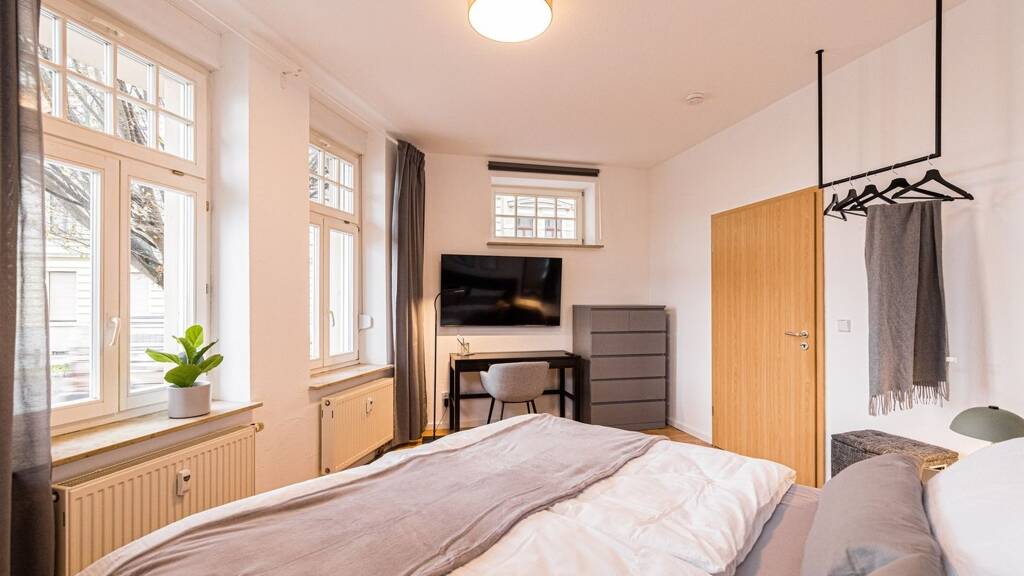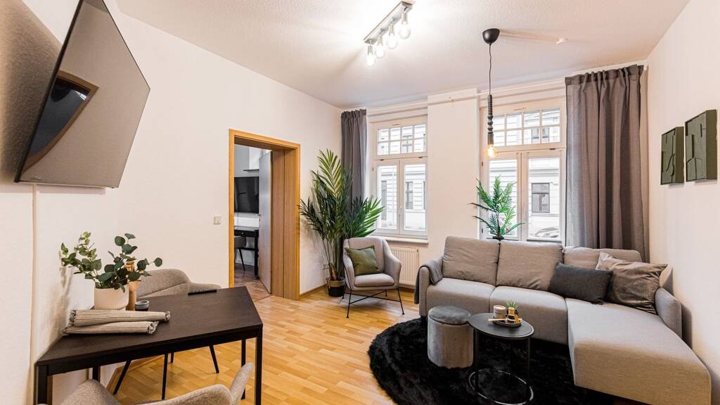Diese und weitere voll möblierte Wohnungen finden sie auf www.globalflats.com Sehr schönes Apartment in Magdeburg Sudenburg mit 2 getrennten Schlafzimmern und gemütlichen Wohnzimmer. Die Wohnung ist modern, geräumig mit hochwertigen Möbeln im skandinavischem Design ausgestattet. Sie verfügt über schnelles Glasfaser-Internetverbindung, 3 große Smart TVs und einer umfangreichen Ausstattung für einen längeren Aufenthalt. Die Wohnung hat große Fenster, die viel natürliches Licht hereinlassen und ein angenehmes Wohngefühl erzeugen. Es besteht eine gute Verkehrsanbindung, die es Ihnen ermöglicht, schnell und einfach zu Ihrem Arbeitsplatz oder zu anderen Orten in der Stadt zu gelangen.