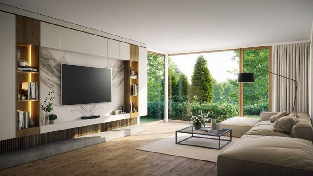 Es wird mehr als nur der ĂŒbliche Standard geboten. Zukunftsweisende Technik-Trends werden mit zeitlos eleganten Raumkonzepten und gemĂŒtlichen WohlfĂŒhl-AtmosphĂ€ren verbunden. Eichen-Landhausdielen, groĂformatige Fliesen in individueller Farbwahl und edle Armaturen machen höchste QualitĂ€t direkt spĂŒrbar, wobei die raumhohen Fenster, die optisch mit der prĂ€zisen Formgebung des Baukörpers verschmelzen, das erstklassige LebensgefĂŒhl zusĂ€tzlich unterstreichen.