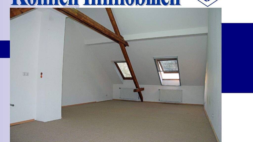 Die zur Vermietung stehende Wohnung befindet sich im Dachgeschoss eines Dreiparteienhauses, welches ursprünglich um ca. 1907 errichtet worden ist. Es handelt sich um eine frisch renovierte Wohnung mit entsprechenden Holzbalken, die für eine gemütliche Atmosphäre sorgen. Das Haus wurde ca. 1995 kernsaniert. Das Dach ist entsprechend gedämmt. Die Fenster sind in Holzausführung doppeltverglast, mit Plissees. Bei dem Oberboden oberhalb der Holzgeschossdecke (mit Trittschalldämmung) handelt es sich um einen Laminatboden in einem warmen Ton. Im Bad ist der Oberboden teils gefliest und mit entsprechend für Nassräume hergestellten Laminat versehen. Es ist keine Einbauküche vorhanden. Die Wohnung wird bei Mietbeginn renoviert (weiß gestrichen, neuer Bodenbelag) übergeben.
