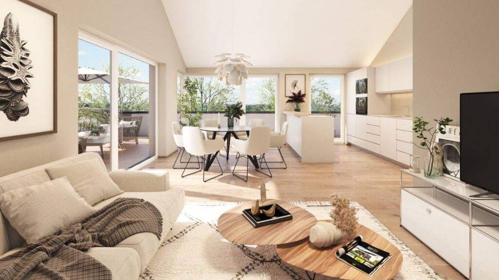 Ein besonderes Highlight sind die großzügigen Außenbereiche: Balkone, Loggien und Terrassen laden zum Entspannen und Genießen ein und bieten einen herrlichen Blick auf die umliegende Natur.