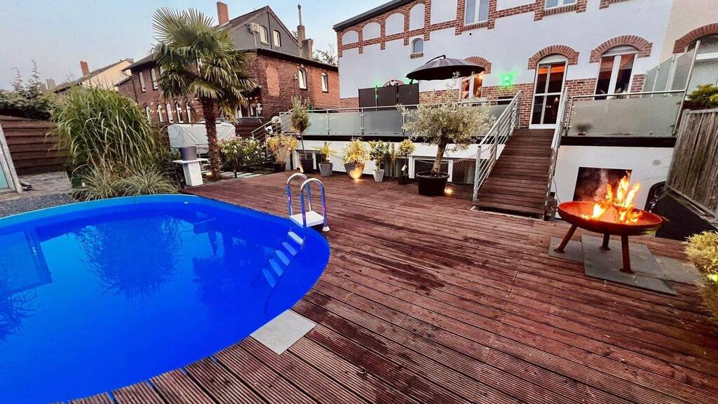Dieses ehemalige Zechenhaus kombiniert historische Bausubstanz mit modernstem Ausstattungsstandard. Nach einer Kernsanierung im Jahr 2008 wurde das Objekt fortlaufend technisch und optisch aufgewertet (zuletzt 2024/2025). Objektdaten Grundstück: 390 m² Wohnfläche: ca. 220 m² Fenster: doppelte verglaste Kunststoffisolierfenster aus 2008, elektrische Rollläden (gesamtes System von GIRA), Tür Gegensprechanlage mit Kamera von GIRA Ebenen: Souterrain mit bodentiefen Fenstern, EG, OG, voll ausgebautes Dachgeschoss (klimatisiert) Zustand: Kernsaniert 2008, umfassende Renovierungen 2024/2025 Heizung: Gas-Zentralheizung jährlich gewartet, Fußbodenheizung im Souterrain Ausstattung & Besonderheiten Wohnbereiche & Innenausbau: Historische Details: Aufgearbeitete Original-Echtholzdielen von 1903 im gesamten Wohnbereich. Dachgeschoss: Vollständig ausgebaut und klimatisiert Souterrain: Als Wohnraum ausgebaut mit bodentiefen Fenstern für natürlichen Lichteinfall, Fußbodenheizung und zusätzlichem Heimkinoraum. Wäscheraum mit Waschmaschinenanschluss und Technikraum für Netzwerk und Alarmanlage, Heizungsraum, zusätzlicher Aufbewahrungsraum, Bad mit bodentiefer Dusche und WC Erdgeschoss: - Küche: Hochwertige Einbauküche (Übernahme gegen Aufpreis möglich). - Wohnzimmer offen zur Küche - Flur mit Naturstein - Gäste WC - 2 Aufbewahrungsräume für Schuhe/Jacken/Sonstiges Obergeschoss: - Badezimmer, Badewanne mit Whirlpoolfunktion, Dusche, - Gästezimmer (klimatisiert), - Flur - Büro/Kinderzimmer Außenanlage & Freizeit: Terrassen: Große Holzterrasse (neu 2024) sowie eine großzügige geflieste Terrasse (neu 2025). Pool: Außenpool (7x3 m) inklusive Poolheizung/Wärmepumpe (Poolheizung in 2024 erneuert). Garage inkl elektrischem Tor und Fernbedienung Wallbox in 2023 installiert, voll funktionsfähig Grundstück: Vollständig eingefriedet, großes automatisches elektrisches Einfahrtstor, Zaun mit verzinkter Stahlumrandung und Bambuseinlagen Parken: 1 Garage, 3 Außenstellplätze. Sicherheit & Technik: Alarmanlage: Jedes Fenster und alle Türen im Objekt sind einzeln elektrisch gegen Glasbruch gesichert. Klimatisierung: Split-Geräte im Dachgeschoss und im Gästezimmer. Instandhaltung der letzten Jahre: Das Haus wurde ohne Wartungsstau gepflegt. Die letzte große Renovierung im Jahr 2024 umfasste den gesamten Außenbereich, die Pooltechnik sowie die Modernisierung eines Badezimmers. Die Heizung wurde jährlich gewartet, zuletzt unter Anderem Brennkammer erneuert, Ersatzteile für ca. 3000 Euro in den letzten Jahren erneuert, kein Instandhaltungsstau o.Ä. Einziehen und wohlfühlen. Das Haus kann nach Absprache übernommen werden.