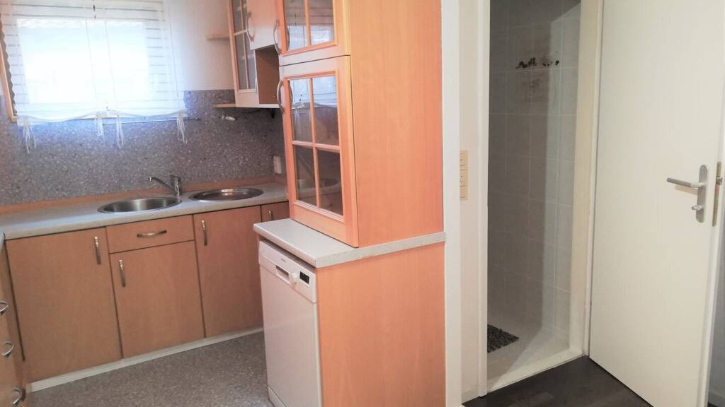Von der Küche kommt man in das Schlafzimmer sowie in das daneben eingebaute Badezimmer mit Handwaschbecken, Dusche und WC.