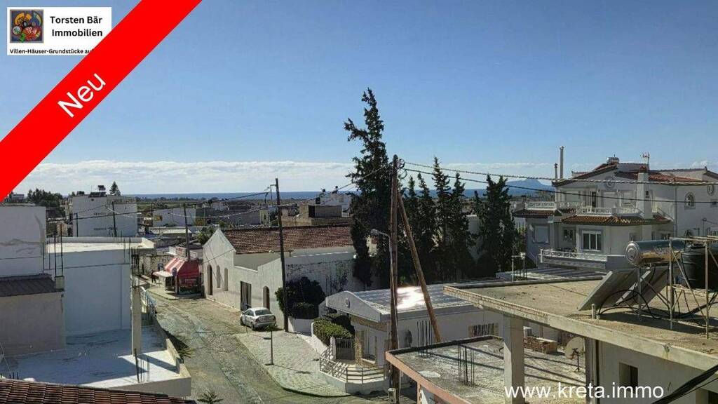 Stellen Sie sich vor, Sie wachen morgens auf, öffnen die großen Veranden und lassen den Blick schweifen über die sanfte Stadtlandschaft von Tympaki bis hin zum funkelnden Meer - das ist Ihr neues Zuhause auf Kreta. Dieses einzigartige Einfamilienhaus mit 111 m² Wohnfläche auf einem großzügigen 316 m² Grundstück verbindet mediterrane Gemütlichkeit mit praktischer Moderne und lädt ein zu unbeschwertem Wohnen, sei es als dauerhafter Rückzugsort oder als idyllisches Feriennest.