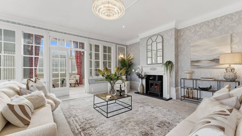 Extending to over 11,000 square feet, the house unfolds with a sense of generosity and rhythm. Ceiling heights, proportions and light have been carefully preserved, allowing each principal room to feel both expansive and composed. Reception spaces flow with ease, offering the flexibility required for both formal entertaining and relaxed family life.