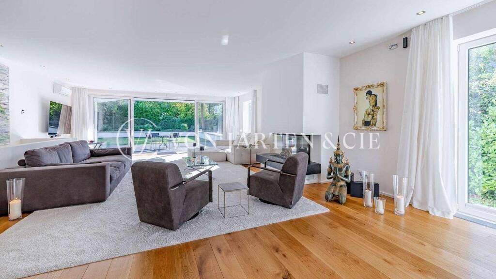 Die Wohnung überzeugt mit großzügiger Raumgestaltung und lichtdurchflutetem Ambiente. Der offene Wohn- und Essbereich mit bodentiefen Fenstern und einem stilvollen Kamin bildet das Herzstück des Hauses und öffnet sich zur weitläufigen Südterrasse mit Blick in den liebevoll angelegten Garten, der Ihnen zur alleinigen Nutzung zur Verfügung steht. Drei edle Kamine verleihen den Wohnräumen eine besondere Atmosphäre und sorgen ganzjährig für ein behagliches Wohngefühl.