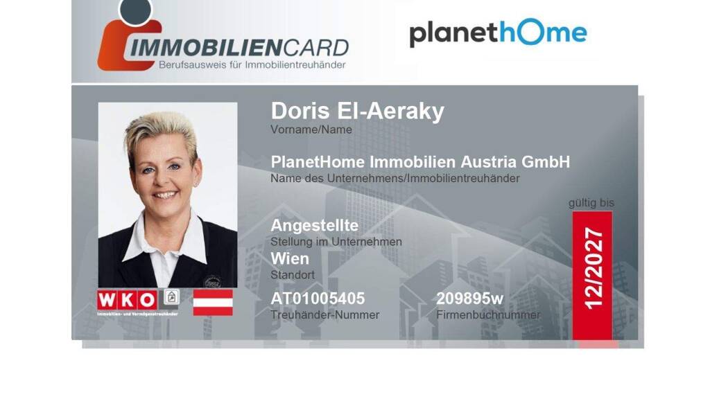 Haben Sie Fragen, wünschen Sie weitere Informationen oder einen persönlichen Besichtigungstermin? Gerne stehe ich Ihnen unter der Telefonnummer +43 699 116 76 352 oder per E-Mail doris.el-aeraky@planethome.at zur Verfügung!