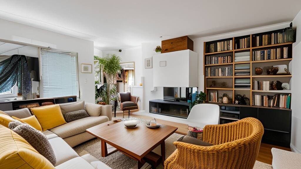 Im hinteren Bereich der Wohnung befindet sich das gemütliche Wohnzimmer mit einem Kamin, der für eine angenehme Wärme sorgt. Eine Raumspartreppe führt in den Dachraum, der als zusätzlicher Stauraum oder als kreatives Hobbyzimmer genutzt werden kann.