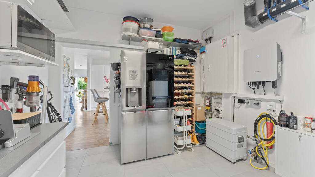 Die hochwertige Einbauküche integriert sich offen in den Wohnbereich und schafft eine angenehme Verbindung von Kochen, Essen und Leben. Das große Badezimmer überzeugt mit moderner Ausstattung und ebenerdiger Dusche. Zusätzlich steht ein separates Gäste-WC zur Verfügung.