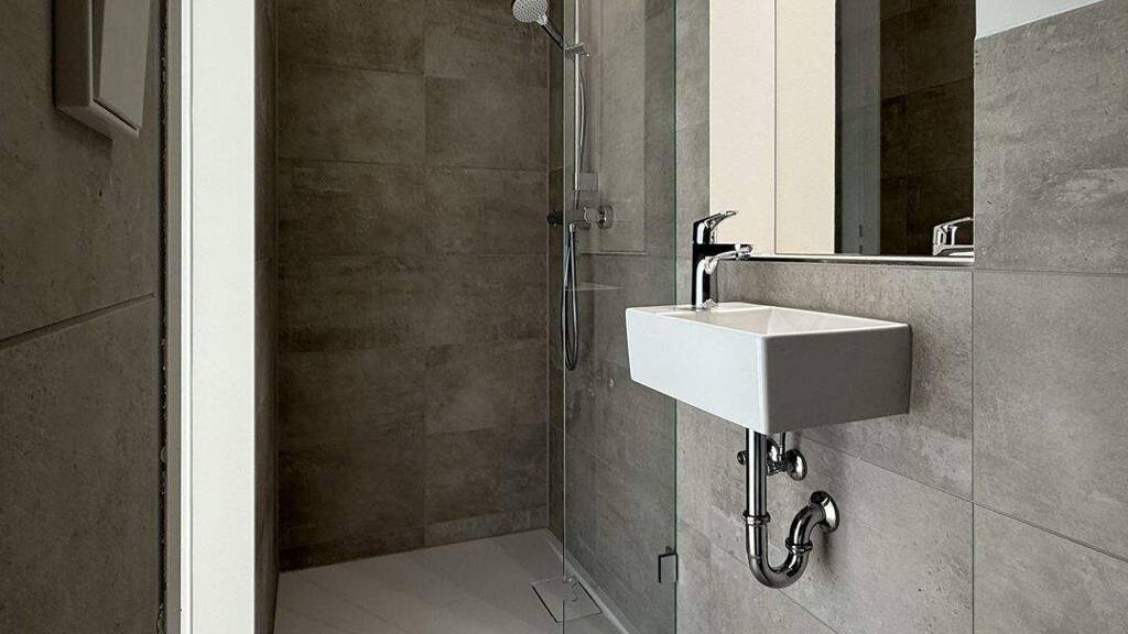 Neben einer entspannenden Badewanne bietet das Komfort-Bad eine großzügige Dusche (90?×?90?cm) und einen großen Spiegel, der das Raumgefühl zusätzlich verstärkt.