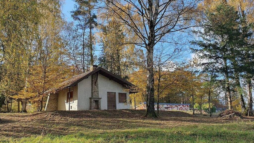 Auf etwa mittlerer Höhe des sanft ansteigenden Terrains befindet sich ein kleines Wohnhaus aus dem Jahr 1963, stark sanierungsbedürftig (Kernsanierung o. Abriss) ist. Der Bestand wurde bewusst erhalten, um den zukünftigen Umbau oder Neubau zu erleichtern. Das Gebäude steht auf der Grenze zweier Parzellen, was zusätzliche Gestaltungsspielräume für neue Planungen eröffnet.