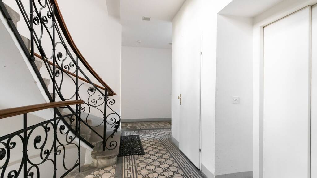 Über das Stiegenhaus bzw bequem per Lift erreichen Sie die im 4. Stockwerk situierte luxuriösen Maisonette-Wohnung.