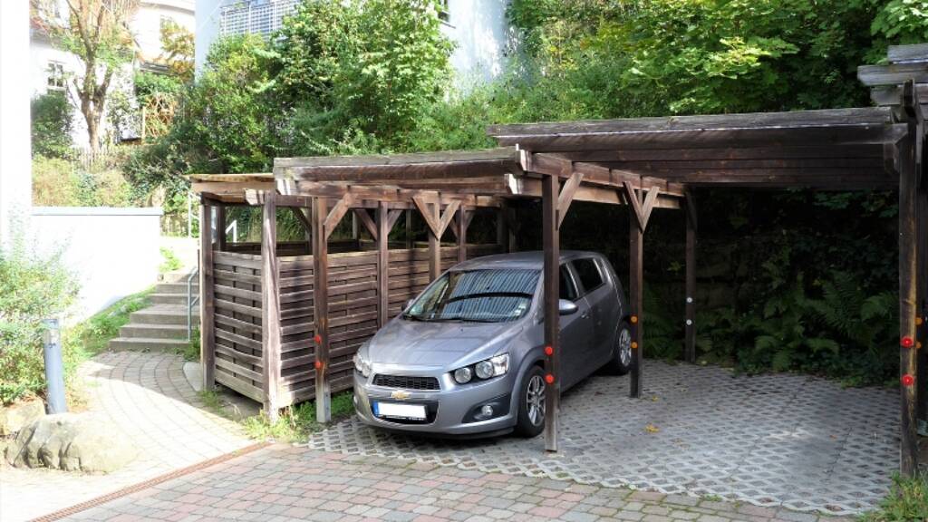 Zur Wohnung gehört ein Keller und ein überdachter Pkw-Stellplatz (Carport) im Freien.