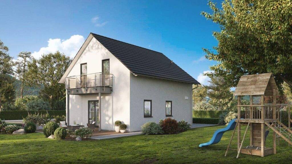 Mit einer Wohnfla?che von fast 124 m² ist dieses Haus perfekt geeignet fu?r Familien mit Kindern. Das Erdgeschoss besticht durch ein offenes, großzu?giges Raumkonzept, das durch den Zugang zu Terrasse und Garten ein Gefu?hl von Freiheit ins Haus holt. Der Wohn- und Essbereich mit offener Ku?che, ein Ga?ste- WC, der Hauswirtschaftsraum und ein gera?umiger Flur mit Treppenaufgang finden hier Platz. Im Dachgeschoss befinden sich drei Schlafzimmer sowie ein geräumiges Badezimmer.