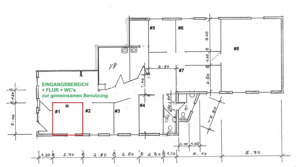 Die Sanitärräume sowie der Empfangsbereich steht Ihnen mit den anderen Mieter zur Verfügung.