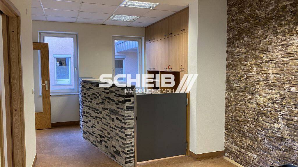Die Mietfläche setzt sich wie folgt zusammen, 7,85 m² Bürofläche und 5,53 m² anteiliger Gemeinschaftsfläche. Die Bürofläche befindet sich in unmittelbarer Nähe der B290 und bietet Ihnen daher ideale Werbemöglichkeiten. In der Mietfläche sind eine abgehängte Rasterdecke sowie ein hochwertiger Linoleumboden verbaut. Dank des großen Fensters werden Sie mit reichlich Tageslicht versorgt. Internet und ein Telefonanschluss sind vorhanden.
