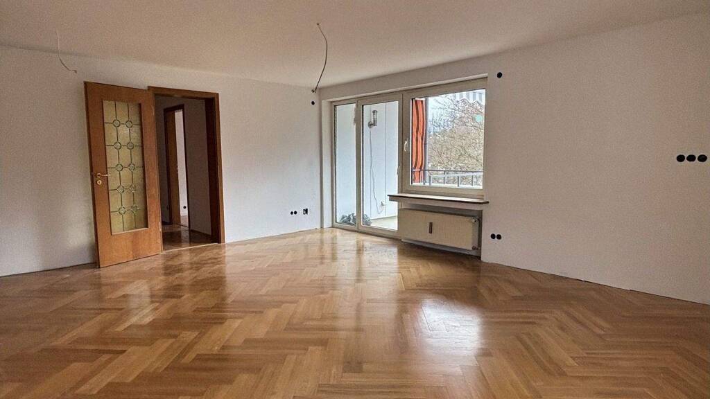Der großzügige Wohn- und Essbereich ist mit hochwertigem Echtholz-Parkett ausgelegt und bildet das Zentrum der Wohnung. Von hier aus gelangen Sie direkt auf den sonnigen Südost-Balkon, der dank der bereits installierten Markise auch an heißen Tagen zum Verweilen einlädt.