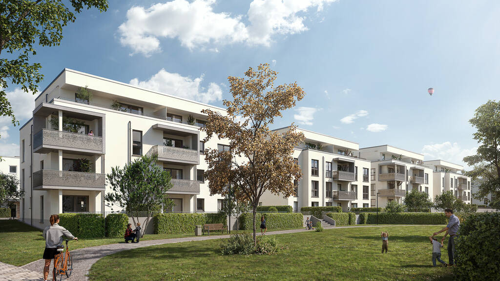 213 Mietwohnungen 165 freifinanzierte und 48 öffentlich geförderte Wohnungen 2- bis 5-Zimmer-Wohnungen mit Größen von rund 52 bis 123m² Moderne Ausstattung mit Design-Vinyl-Böden, Fußbodenheizung, Video- oder Audiogegensprechanlage, elektrisch betriebene Rollläden sowie mit Raufaser tapezierte, weiß gestrichene Wände und Decken Badezimmer mit bodengleicher Dusche Teilweise zweites Bad mit Badewanne oder separates Gäste-WC Waschmaschinenanschlüsse in den Wohnungen Terrasse, Balkon oder Dachterrasse Schwellenlose Ausstattung mit Aufzugsanlage Privater Kellerraum zu jeder Wohnung 212 Tiefgaragenstellplätze In der Gesamtmiete enthaltene Serviceleistungen für unsere Kunden: Reparaturservice, Treppenhausreinigung, Grünflächenmanagement mit Winterdienst sowie Hausmeisterservice