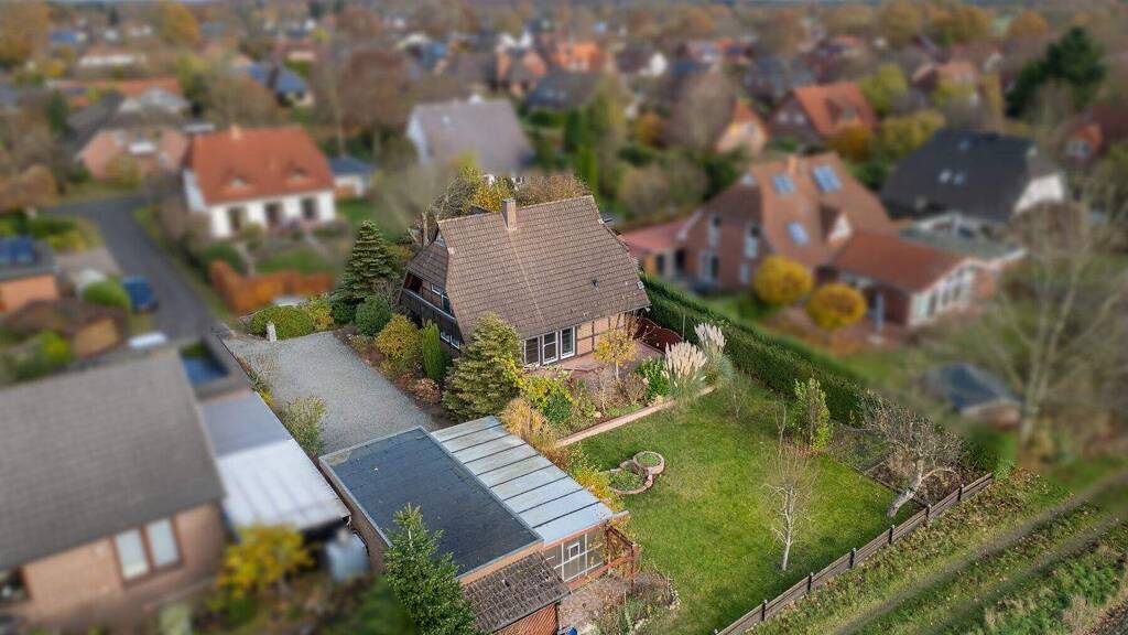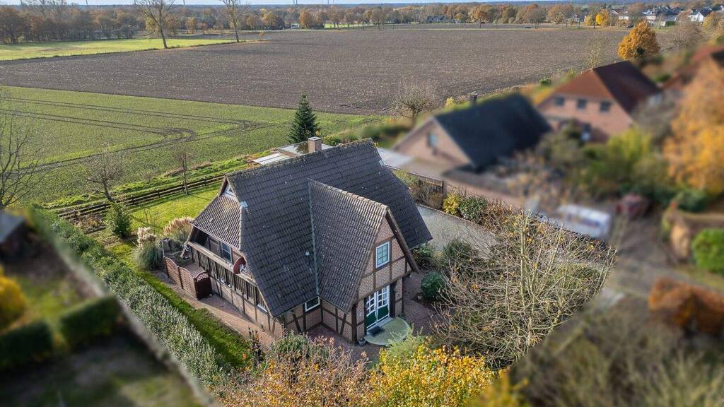 Dieses charmante Fachwerkhaus liegt in einer ruhigen Wohnstraße von Tarmstedt und bietet einen tollen Ausblick über die angrenzenden Felder.