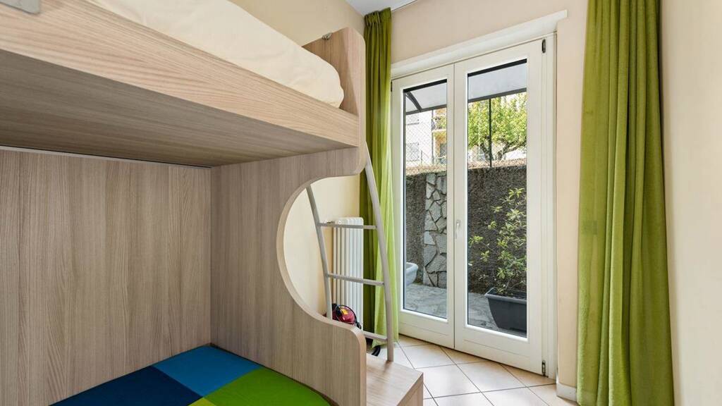 Die Wohnung befindet sich im Obergeschosss und besteht aus einer Diele, einem Wohnzimmer mit offener Küche mit Zugang zum Panoramabalkon, einem Schlafzimmer mit Doppelbett, einem Schlafzimmer mit zwei Einzelbetten, einem Badezimmer und einem Hinterhof.