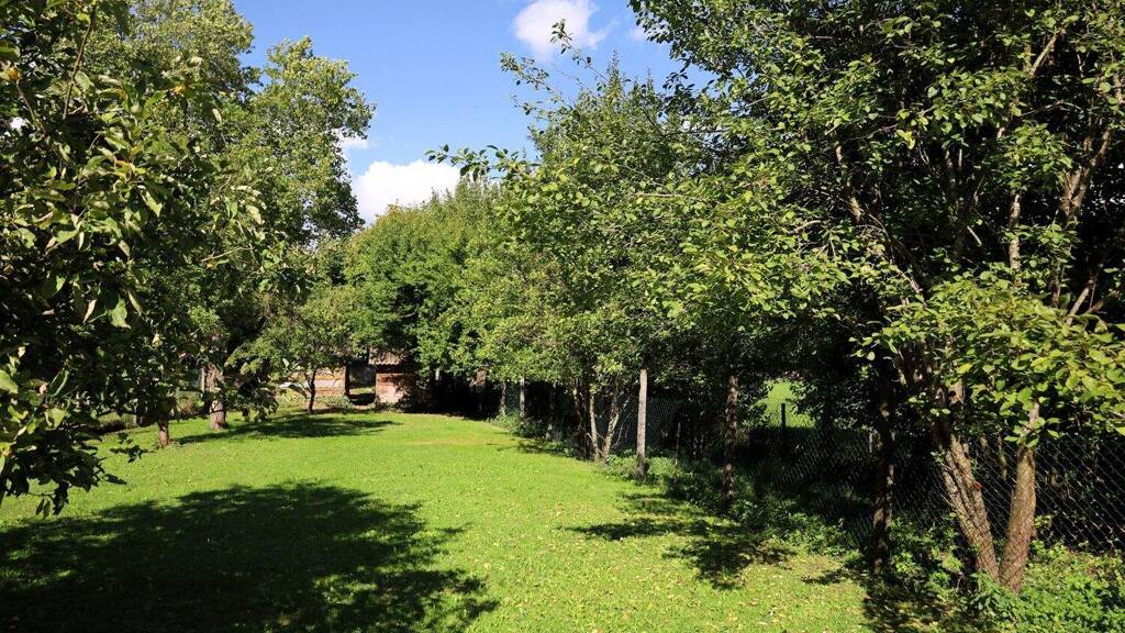Zur Straße hin erstreckt sich ein gepflegter, traditioneller Bauerngarten, während sich hinter dem Haus ein schmal geschnittenes und dennoch großzügiges Grundstück anschließt. Dieses ist überwiegend als Wiese angelegt, verfügt über gewachsenen Baumbestand und mehrere kleine Schuppen, die sich als Lagerschuppen oder Hühnerstall nutzen lassen, bei Bedarf aber auch unkompliziert zu entfernen sind. Ein Doppelcarport ergänzt das Angebot.