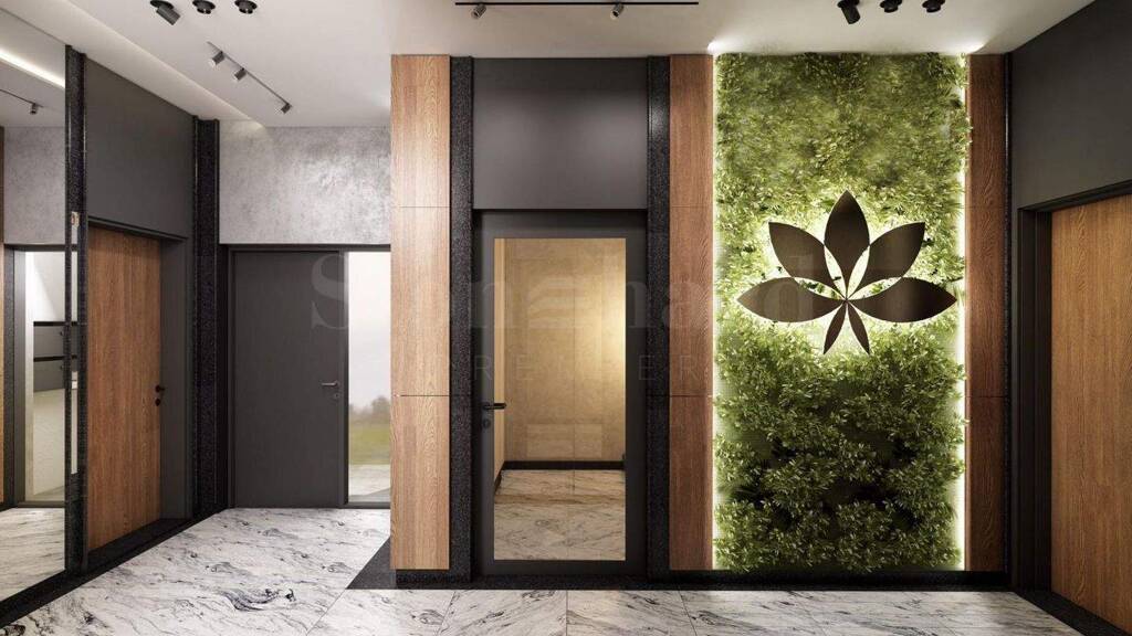 Grünflächen und hohe Bäume sind integraler Bestandteil des architektonischen Konzepts. Der Außenbereich des Gebäudes wird üppig gestaltet, mit zahlreichen Linden, deren Duft die Sinne belebt und eine bleibende Erinnerung an die Harmonie zwischen Natur und Ihrem Zuhause hinterlässt.