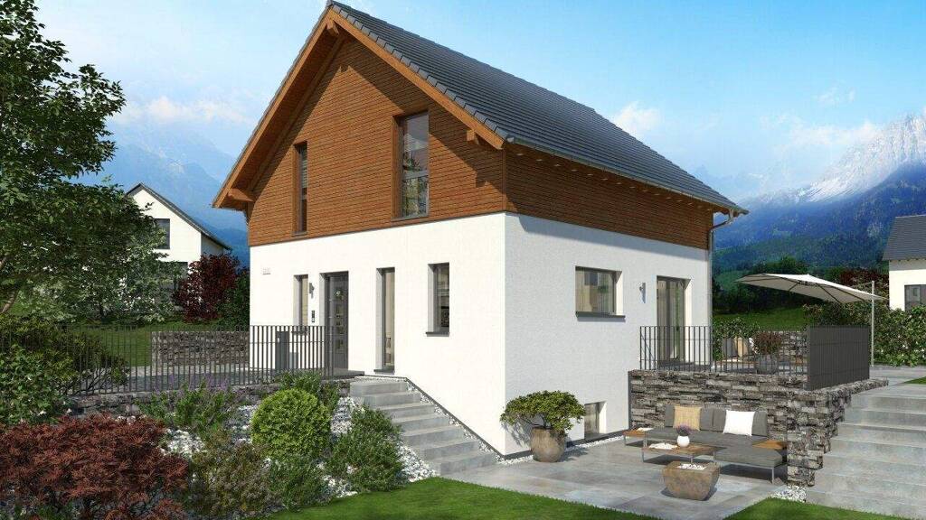 Bei dem hier abgebildeten Haus handelt es sich um ein projektiertes Haus bei welchem Sie selbstverständlich Ihre individuellen Wünsche und Bedürfnisse in die Planung mit einfließen lassen können. So können der Grundriss und der Haustyp im Rahmen der Bauvorschriften frei gestaltet werden und der Lieferumfang individuell auf Ihre Wünsche angepasst werden.