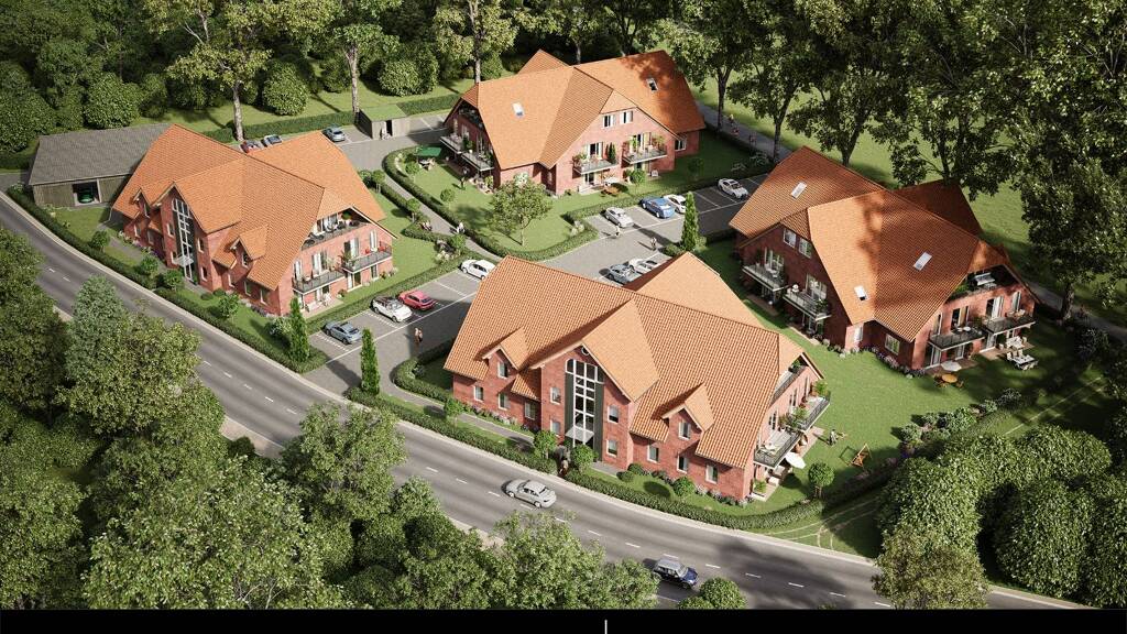 In einer ruhigen Wohngegend 30 Minuten südlich von Bremen entsteht ein Neubauprojekt aus vier Mehrfamilienhäusern mit je 10 Wohneinheiten und 15 KFZ Stellplätzen. Geplant im ortstypischen ländlichen Baustil und als KFW Energieeffizienzhaus 40 mit QNG Nachhaltigkeitsstandard, verfügt jedes Gebäude über 818 m² Wohnfläche. Alle Wohneinheiten sind barrierefrei und über einen Fahrstuhl erreichbar. Jede Wohnung verfügt zudem über mindestens einen Balkon oder eine Terrasse zum umliegenden Garten und den herrschaftlichen Eichenbäumen auf dem Gelände. Die Wohnräume überzeugen durch gut strukturierte barrierefreie Grundrisse, bodentiefe Fenster, sowie Fußbodenheizung in allen Wohnräumen.
