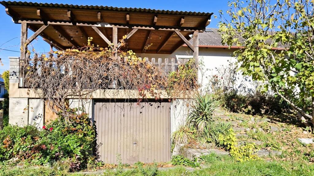 Eine Garage für ein kleines Fahrzeug ist vorhanden, allerdings nicht direkt mit dem Haus verbunden – der Zugang erfolgt ausschließlich von außen.