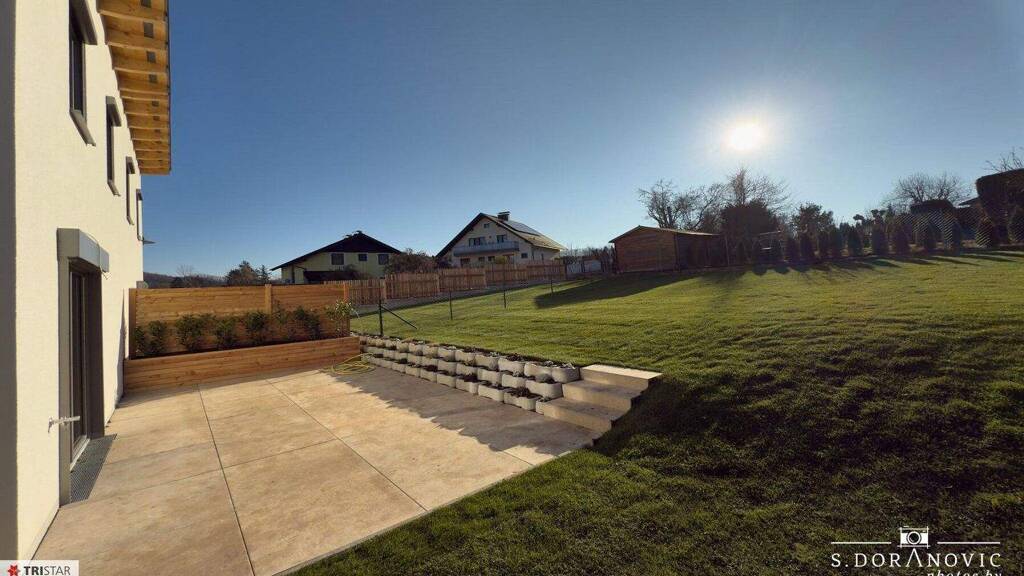 Weiters zählen zur hochwertigen Ausstattung: Eichenparkettböden, keramischer Belag/Feinsteinzeug, Garten mit Rollrasen, etc.