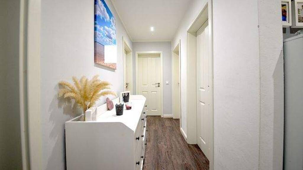 Insgesamt beherbergt das Domizil drei Wohn- bzw. Schlafräume, eine separate Küche, eine Diele, einen Balkon, einen Abstellraum, ein getrenntes WC mit Fenster sowie und ein Tageslichtbad mit Badewanne, Dusche und Waschmaschinenanschluss.