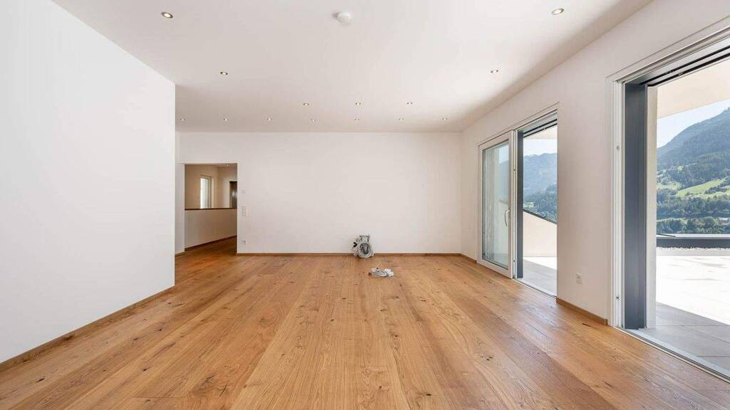 Der zentral gelegene Vorraum erschließt alle Bereiche der Wohnung und führt direkt in den weitläufigen Wohn-, Ess- und Küchenbereich, der durch seine Offenheit und großen Glasflächen beeindruckt. Ein vorhandener Kaminanschluss im Wohnbereich bietet die Möglichkeit, einen Kamin zu integrieren und sorgt für zusätzliche Wohnatmosphäre und Behaglichkeit. Von hier aus gelangen Sie auf die großzügige Terrasse, die zum Entspannen, Genießen und Verweilen einlädt - mit Weitblick und viel Sonne.