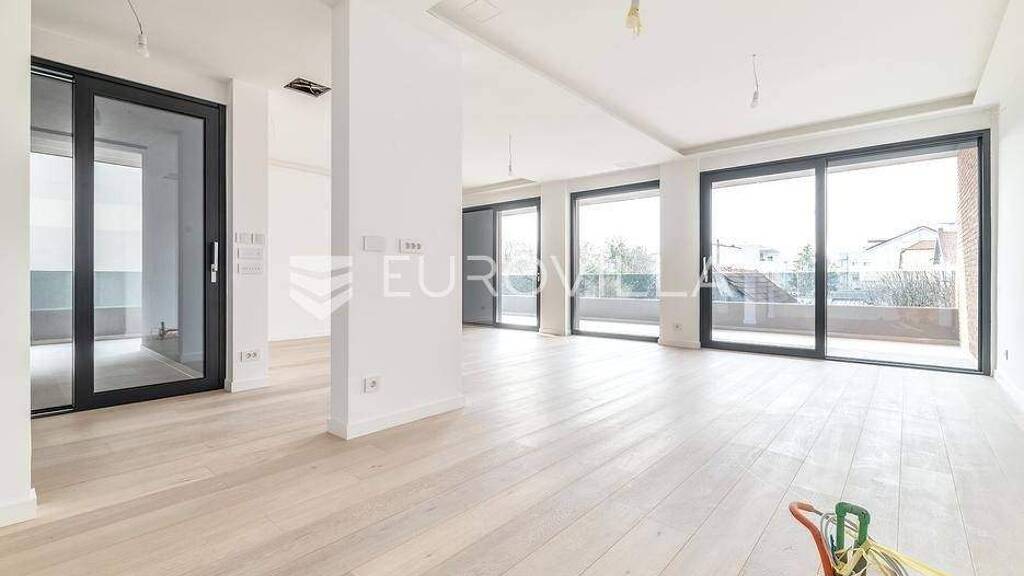 Jordanovac, NOVOGRADNJA, luksuzna zgrada gradena prema najvisim standardima s tri stambene jedinice na jednoj od najatraktivnijih lokacija u gradu.Cetverosoban stan u prizemlju zatvorene povrsine 126,02 m2 sa natkrivenom terasom 57,19 m2, parkirnim mjestom u garazi, spremistem 10,40 m2, vrtom 216,00 m2. Ukupno obracunski 184,02 m2. Postoji mogucnost kupnje dodatnog parkirnog mjesta. Konacne kvadrature stana se mogu jos promijeniti nakon izrade etaznog elaborata.Ulazni hodnik sa velikim garderobnim ormarom, toalet za goste, veseraj, dnevni boravak s kuhinjom i blagovaonicom koji izlaze na terasu; potpuno odvojen spavaci dio sa dvije komforne djecje spavace sobe koje dijele jednu kupaonicu te velika master spavaca soba sa garderobom i kupaonicom.Oprema: kombinacija ventilirane fasada i fasadne opeke, alu vanjska stolarija sa troslojnim staklom, lift, podno grijanje dizalica topline, klimatizirane sve prostorije, protuprovalna vrata, videoportafon, hrastov parket I klase, vrhunska sanitarna oprema I klase. Stan je orijentiran na sve 4 strane od kojih su jug i zapad glavna orijentacija. Visina stropa 280 cm.Sve ostale informacije na upit.... Vise na eurovilla.hr, ID: 474399