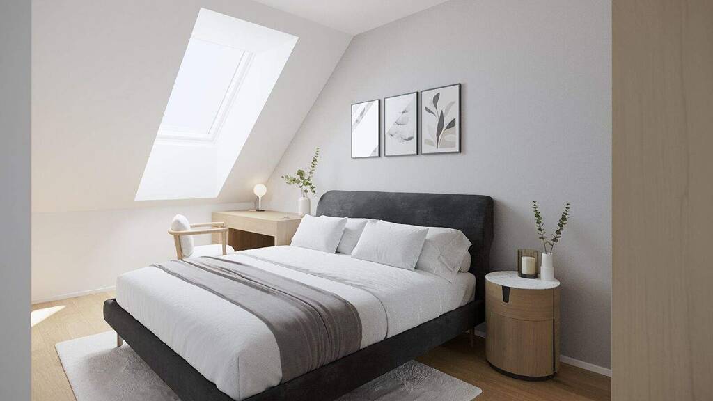 Die Dachgeschosswohnung Top 1/14 ist nordseitig gelegen und bietet Ihnen 3 Zimmer, AnschlĂĽsse fĂĽr eine offene KĂĽche im Wohnzimmer, ein Badezimmer mit Walk-in-Dusche und ein Waschbecken, einen Waschmaschinenanschluss und ein WC sowie einen Abstellraum.