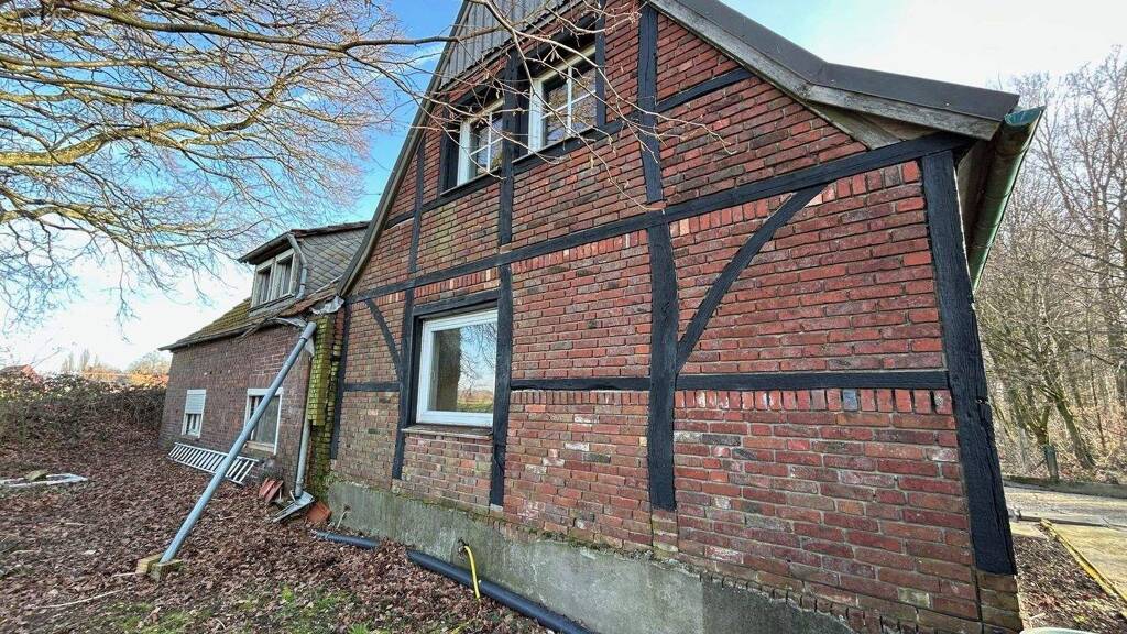 Das kleine Fachwerkhaus wurde vor 90 Jahren errichtet. Von Beginn an gehörte ein kleiner seitlich angebauter Stall zu der Besitzung. Dieser Stall wurde später erweitert. Im Obergeschoss des Anbaues wurden in 1959 weitere Wohnräume genehmigt. Ein Schuppen im hinteren Grundstücksbereich komplettiert das ländlich gelegene Anwesen.